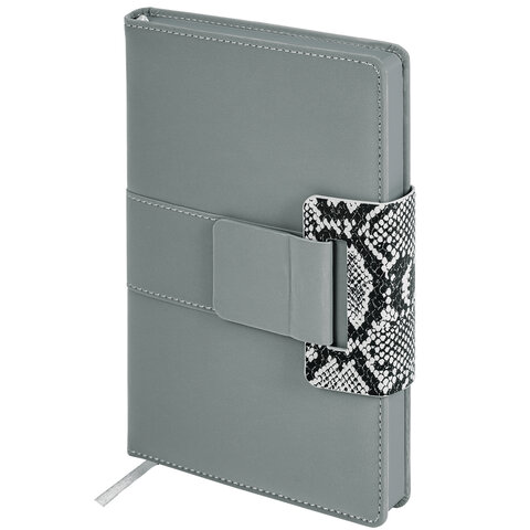 Ежедневник недатированный А5 138х213 мм, BRAUBERG "Safari", под кожу, магнит, 160 л., Snake, серый