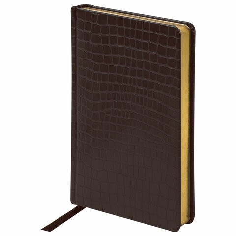 Ежедневник полудатированный А5 (138х213 мм) BRAUBERG "Alligator", под кожу, 192 л., коричневый