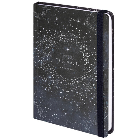 Ежедневник недатированный с резинкой А5 (145х203 мм), BRAUBERG, твердый, фольга, 128 л., "Stars"