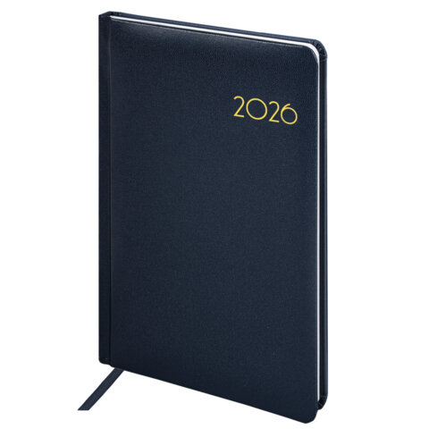 Еженедельник датированный 2026, А5, 145х215 мм, BRAUBERG "Select", балакрон, темно-синий