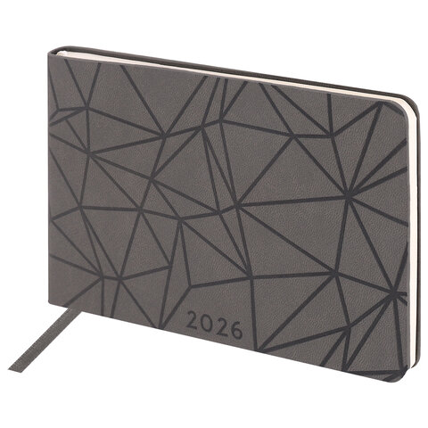 Еженедельник датированный 2026 МАЛЫЙ ФОРМАТ 105х160 мм, А6, BRAUBERG "Imprint", тиснение, черный