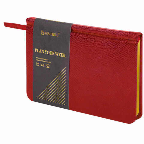 Еженедельник недатированный МАЛЫЙ ФОРМАТ 95х155 мм, А6, BRAUBERG "Iguana", под кожу, 64 л., красный