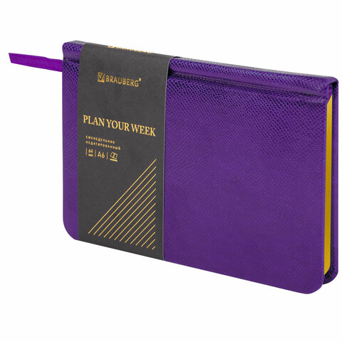 Еженедельник недатированный МАЛЫЙ ФОРМАТ 95х155 мм, А6, BRAUBERG "Iguana", под кожу, 64 л., сиреневый