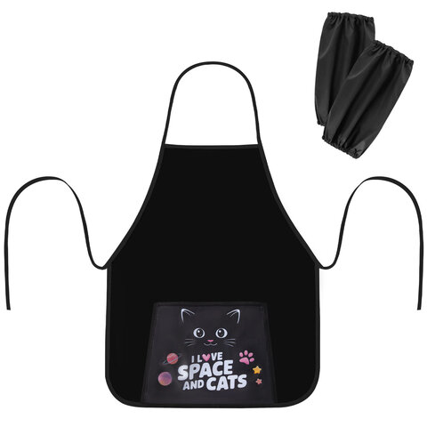 Фартук с нарукавниками для уроков труда ПИФАГОР, 1 карман, 46х54 см, "Dark kitten"