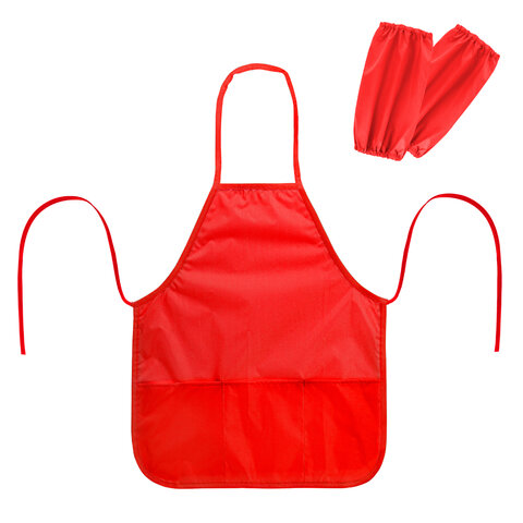 Фартук с нарукавниками для уроков труда ПИФАГОР, 3 кармана, стандартный размер, 44x55 см, красный