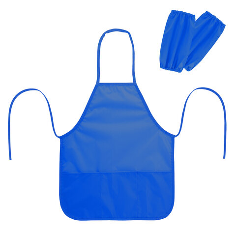 Фартук с нарукавниками для уроков труда ПИФАГОР, 3 кармана, уменьшенный размер, 39х49 см, синий