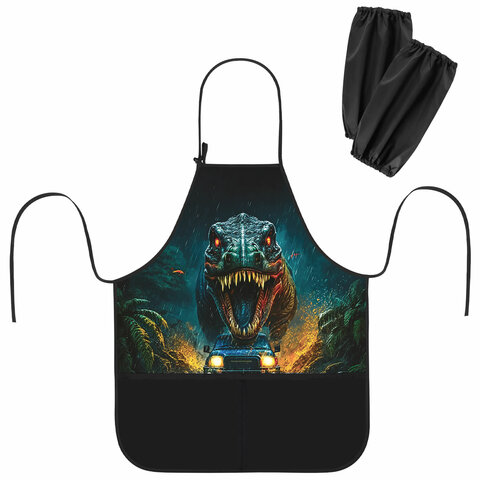 Накидка фартук с нарукавниками для труда BRAUBERG KIDS, 2 кармана, 46x54 см, "Dino chase"