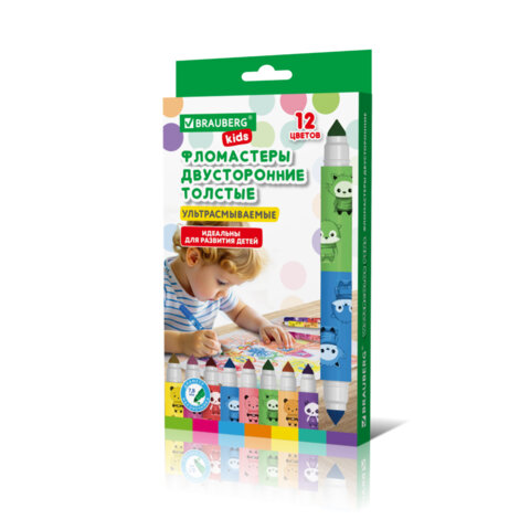 Фломастеры двусторонние BRAUBERG KIDS - прекрасные помощники в развитии творческих способностей у детей!Дополнительно