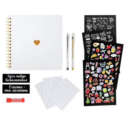 Фотоальбом 22х22 см, 20 белых листов, уголки, стикеры, ручки, клей, BRAUBERG White Line