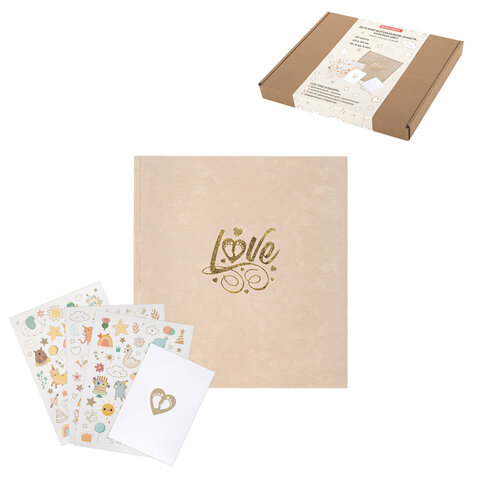 Фотоальбом-анкета детский 23х25 см, 32 листа, стикеры, открытка, конверт, бежевый бархат, BRAUBERG