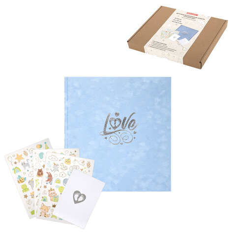 Фотоальбом-анкета детский 23х25 см, 32 листа, стикеры, открытка, конверт, голубой бархат, BRAUBERG