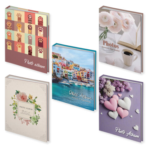 Фотоальбом BRAUBERG на 100 фото 10*15 см, ассорти 5 дизайнов, твердая обложка