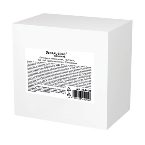 Фотобумага глянцевая, 10х15 см, 200 г/м2, односторонняя, 500 листов, BRAUBERG ORIGINAL