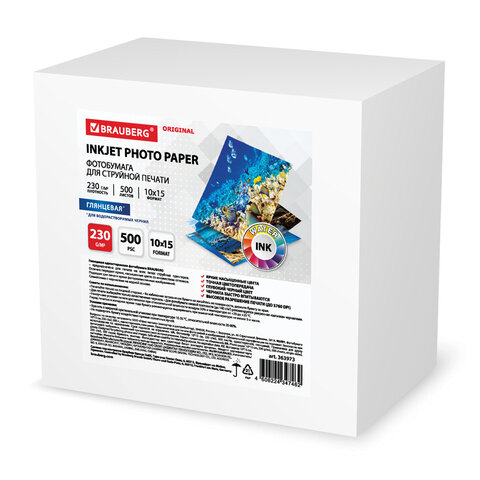 Фотобумага глянцевая, 10х15 см, 230 г/м2, односторонняя, 500 листов, BRAUBERG ORIGINAL