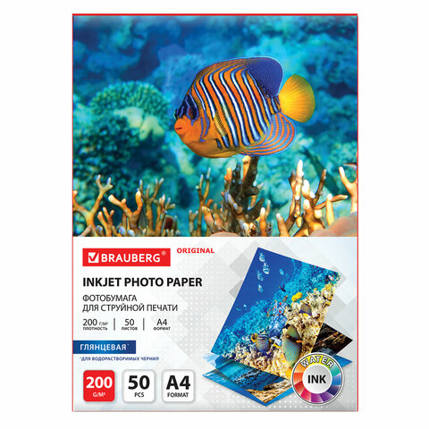 Фотобумага глянцевая, А4, 200 г/м2, односторонняя, 50 листов, BRAUBERG ORIGINAL