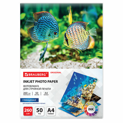 Фотобумага глянцевая, А4, 260 г/м2, односторонняя, 50 листов, BRAUBERG ORIGINAL