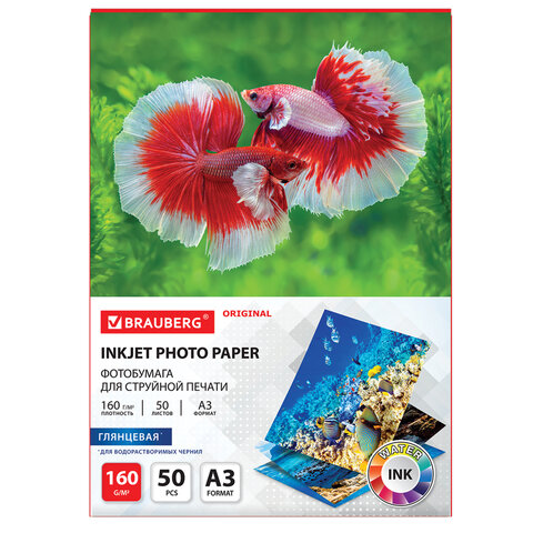 Фотобумага глянцевая БОЛЬШОГО ФОРМАТА, А3, 160 г/м2, односторонняя, 50 листов, BRAUBERG ORGINAL