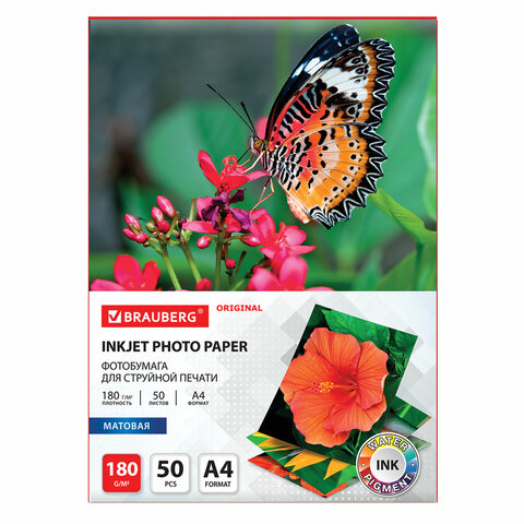 Фотобумага матовая, А4, 180 г/м2, односторонняя, 50 листов, BRAUBERG ORIGINAL