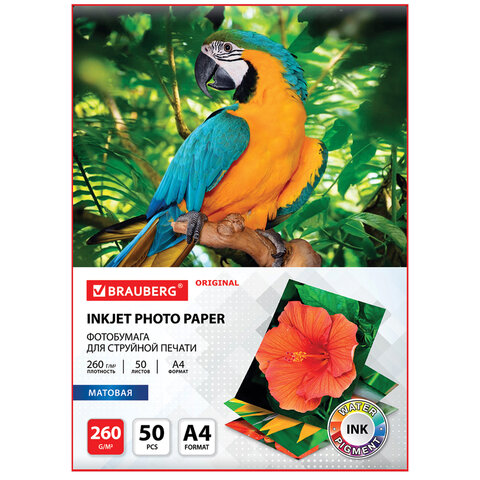 Фотобумага матовая, А4, 260 г/м2, односторонняя, 50 листов, BRAUBERG ORIGINAL