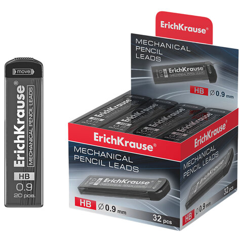 Грифели запасные для механических карандашей 0,9 мм ERICH KRAUSE, HB, КОМПЛЕКТ 20 ШТ,