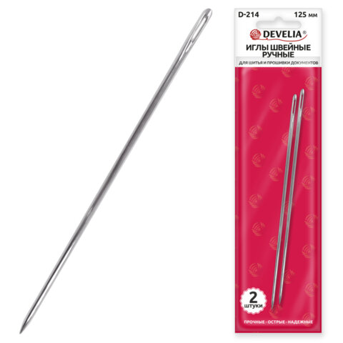 Иглы для шитья и прошивки документов D-214 ручные (цыганские), длина 125 мм, 2 штуки, DEVELIA