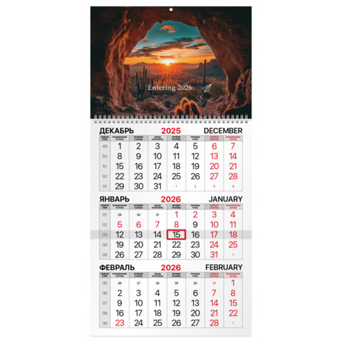 Календарь квартальный на 2026 г., 1 блок, 1 гребень, бегунок, мелованная бумага, BRAUBERG, "Удивительный пейзаж"