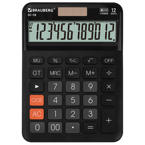 Калькулятор настольный BRAUBERG DC-118-BK (175х126 мм), 12 разрядов, двойное питание, черный