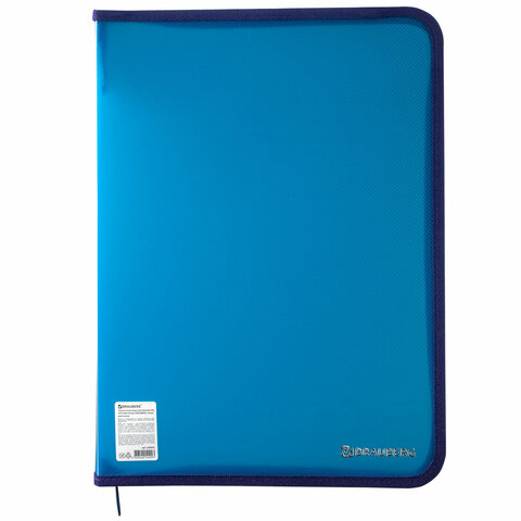 Папка на молнии пластиковая, А4, объемная, 335х240х20 мм, тонированная синяя, BRAUBERG, Россия, 226035
