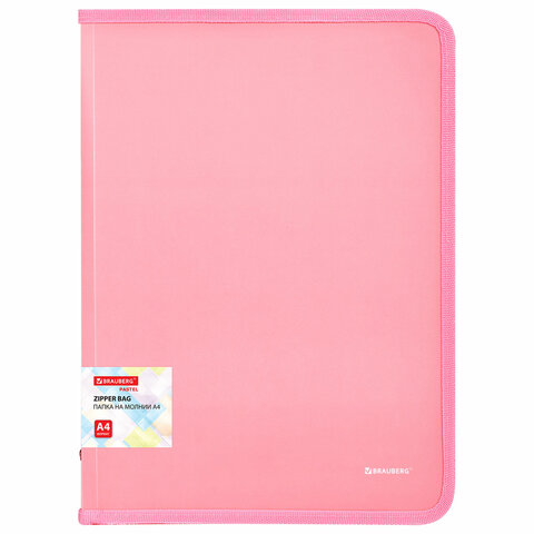 Папка объемная на молнии пластиковая BRAUBERG PASTEL, А4, 330х240 мм, 600 мкм, цвет персиковый, 271972