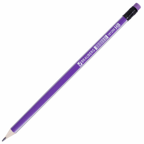 Карандаш чернографитный BRAUBERG, 1 шт., "Lines", HB, трехгранный, с ластиком, фиолетовый/серебристый