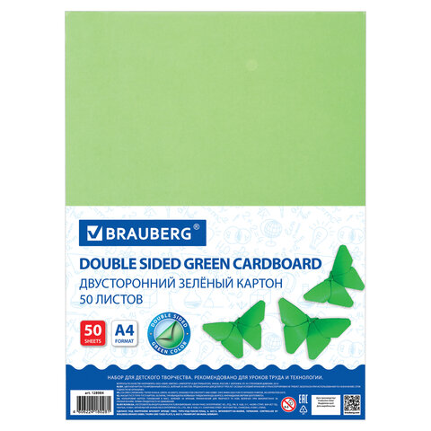 Картон цветной А4 ТОНИРОВАННЫЙ В МАССЕ, 50 листов, ЗЕЛЕНЫЙ, 220 г/м2, BRAUBERG, 210х297 мм