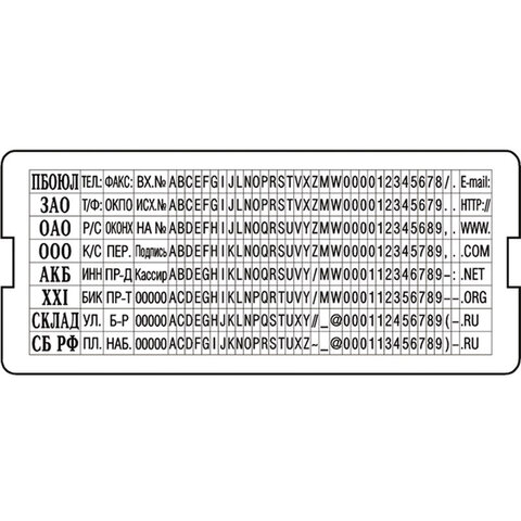 Касса латинских букв/цифр для печатей и штампов TRODAT, 312 символов, шрифт 3,1 и 2,2 мм