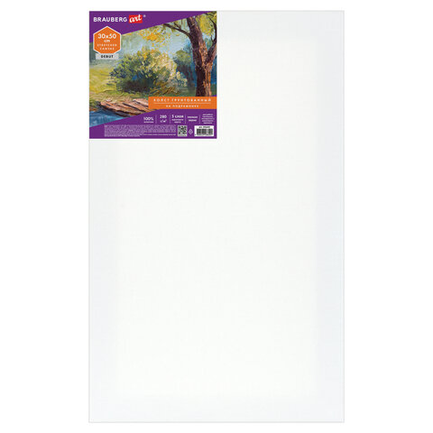 Холст на подрамнике BRAUBERG ART DEBUT, 30х50см, 280 г/м2, грунт, 100% хлопок, мелкое зерно