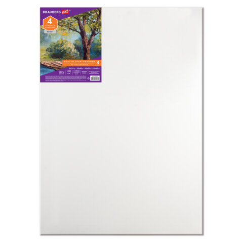 Холсты на подрамнике BRAUBERG ART DEBUT, НАБОР 4 шт., грунтованные, 100% хлопок, мелкое зерно