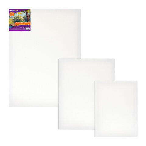 Холсты на подрамнике НАБОР 3 шт. (30х40 см, 40х50 см, 50х70 см), 280 г/м2, грунт, хлопок, BRAUBERG ART