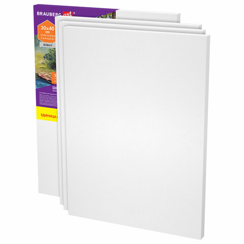 Холсты на подрамнике в коробе НАБОР 4 шт. (30х40 см), 280 г/м2, грунт, 100% хлопок, BRAUBERG ART DEBUT