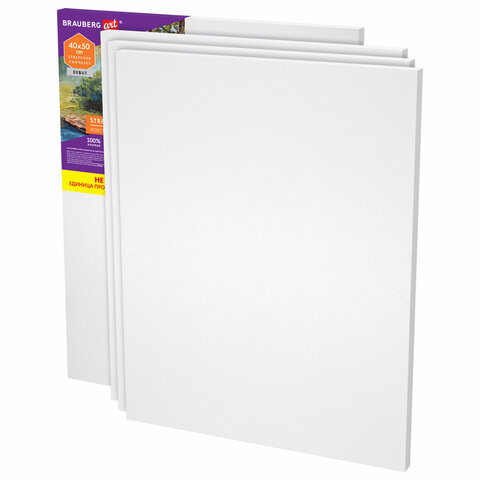 Холсты на подрамнике в коробе НАБОР 4 шт. (40х50 см), 280 г/м2, грунт, 100% хлопок, BRAUBERG ART DEBUT