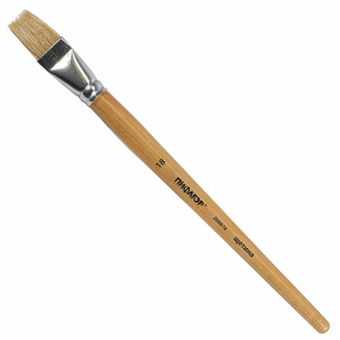 Кисть ПИФАГОР, ЩЕТИНА, плоская, № 18, деревянная лакированная ручка, пакет с подвесом