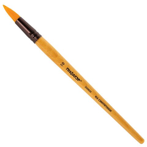 Кисть ПИФАГОР, СИНТЕТИКА, круглая, № 10, деревянная лакированная ручка, с колпачком, пакет с подвесом