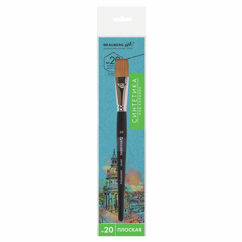 Кисть художественная профессиональная BRAUBERG ART CLASSIC, синтетика мягкая под колонок, плоская, № 20, короткая ручка