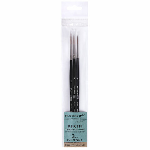 Кисти художественные набор 3 шт., синтетика (лайнеры № 0, 1, 2) BRAUBERG ART CLASSIC