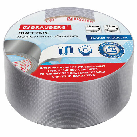 Клейкая АРМИРОВАННАЯ лента 48 мм х 25 м, ТКАНЕВАЯ ОСНОВА, BRAUBERG