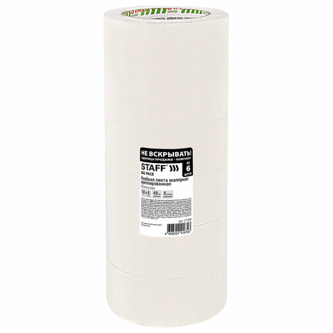 Клейкая лента малярная креппированная 48 мм x 50 м, КОМПЛЕКТ 6 шт., STAFF "BIG PACK2