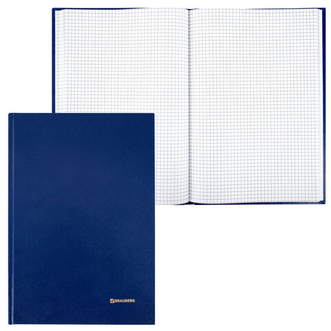Книга учета 96 л., клетка, твердая, бумвинил, блок офсет, А4 200х290 мм, BRAUBERG, синяя