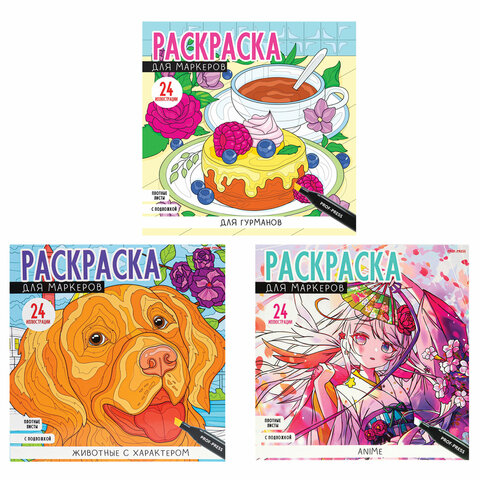 Книжка-раскраска ДЛЯ МАРКЕРОВ MyArt, АССОРТИ дизайнов, 213х213 мм, бумага 120 г/м2, 36 стр., ПП