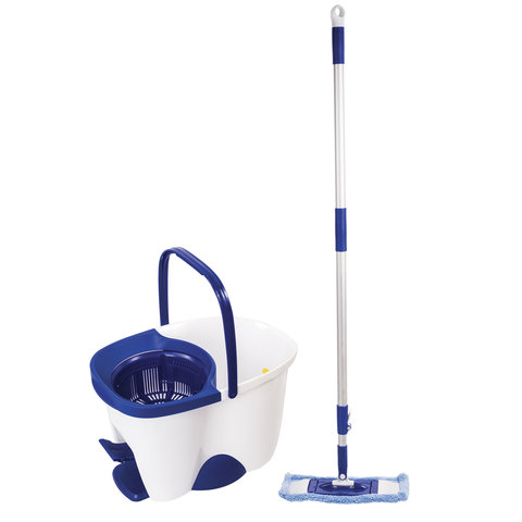 Швабра с отжимом и ведром 18л/8л, центрифуга, отжим педалью, 2 флаундера/насадки круглый и прямоугольный, бело-синий, LAIMA 603625