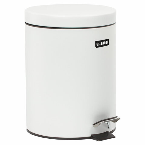 Ведро мусорное с педалью 5 литров "Classic", БЕЛОЕ ГЛЯНЦЕВОЕ, металлическое, со съемным внутренним ведром, LAIMA
