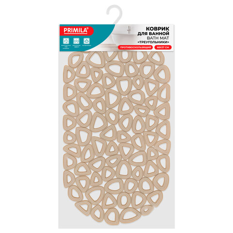 Коврик для ванны противоскользящий 68х37 см, "Треугольники", овальный, бежевый, ПВХ, PRIMILA (ПРИМИЛА)