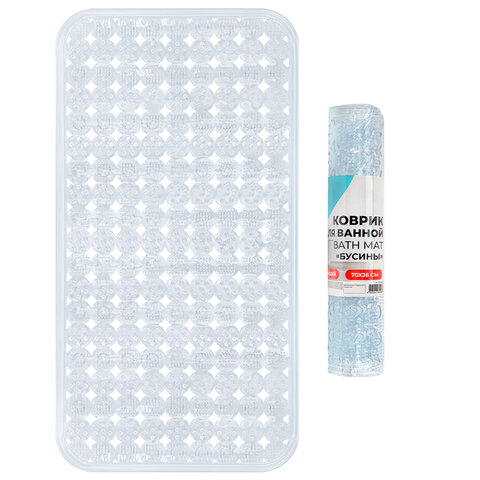 Коврик для ванны противоскользящий 70х36см, "Бусины", прозрачный, ПВХ, присоски, PRIMILA (ПРИМИЛА)
