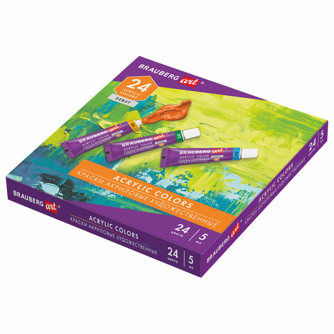 Краски акриловые художественные НАБОР 24 цвета по 5 мл, в тубах, BRAUBERG ART DEBUT